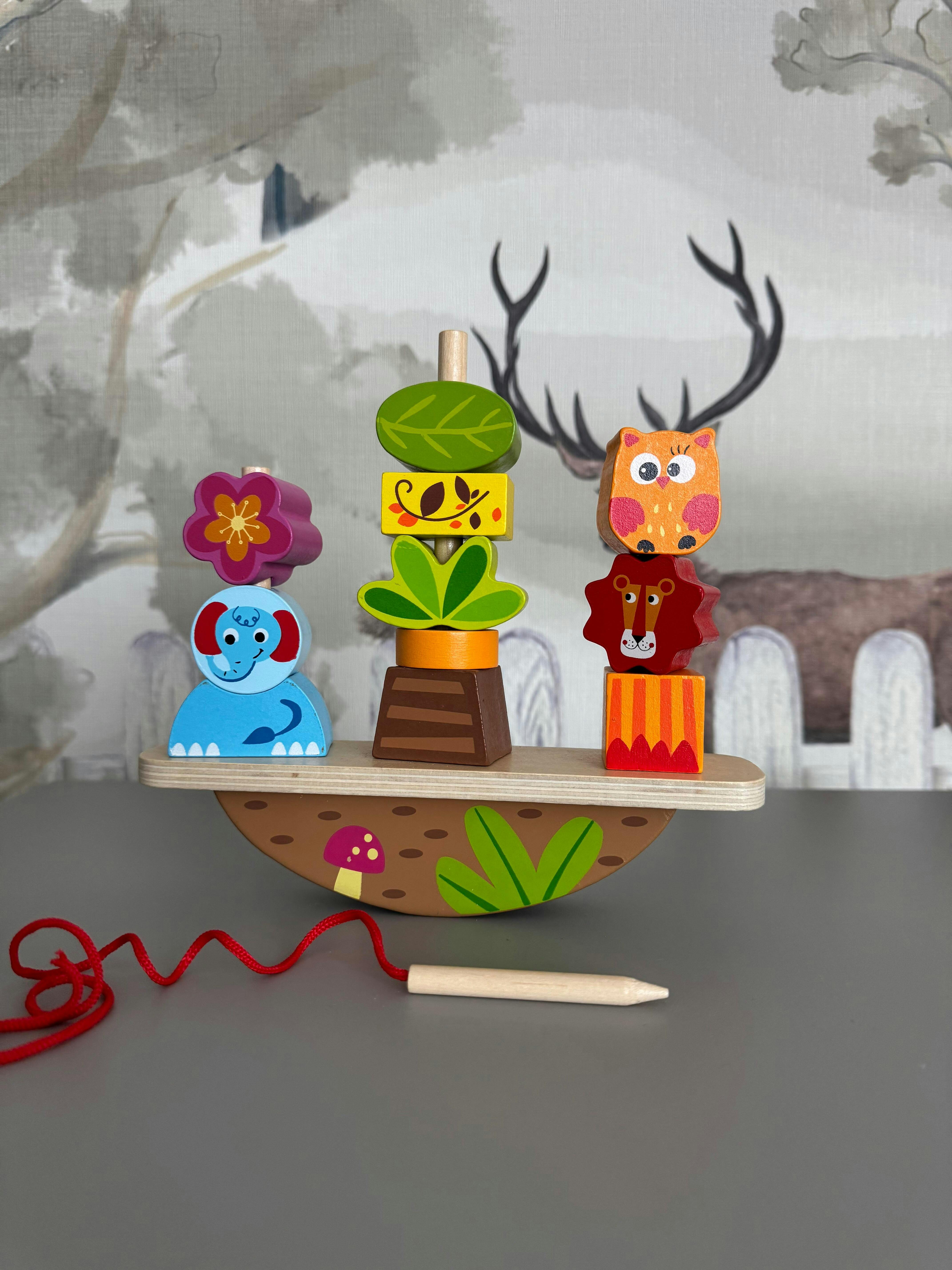 - Stimulează gândirea logică și echilibrul prin stivuirea pe balansoar